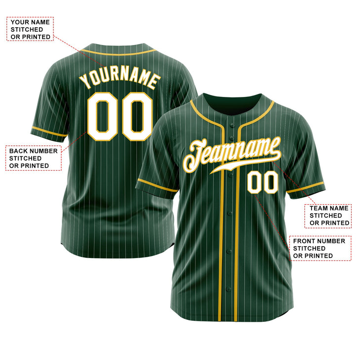 Custom Green White Pinstripe White-Gold Classic Style Authentic Sports Baseball Jersey