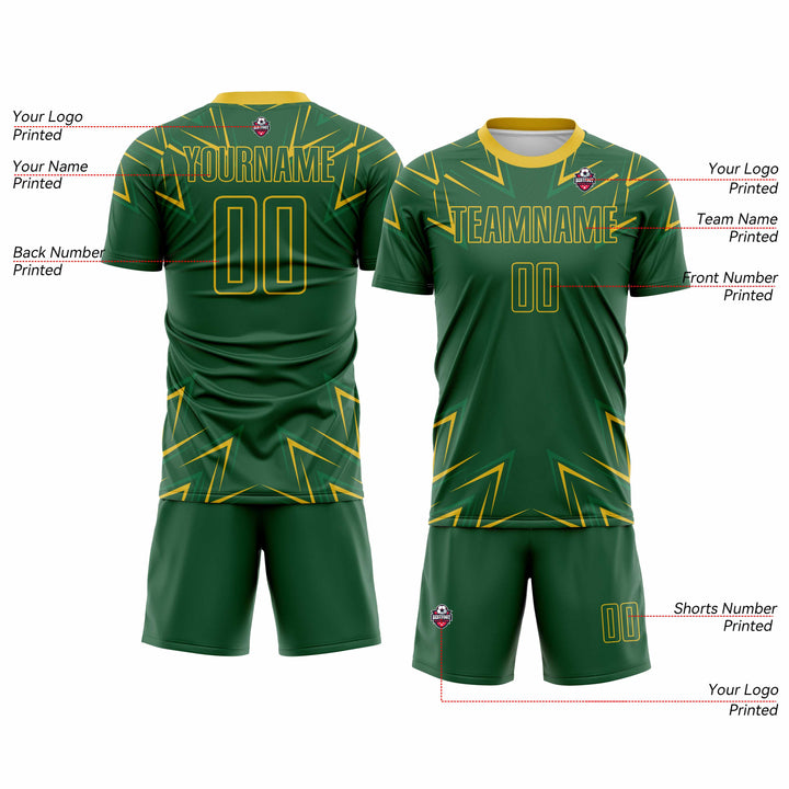Custom Green Yellow Geometric Shapes Classic Uniform Training Sets Soccer Jersey For Adults/Kids