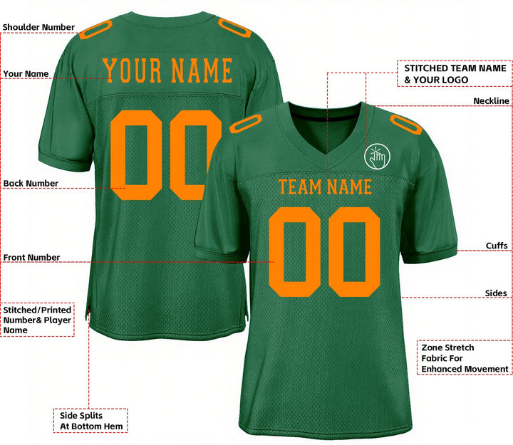 Custom Kelly Green Bay Orange Mesh Classic Style Authentic Sports Football Jersey