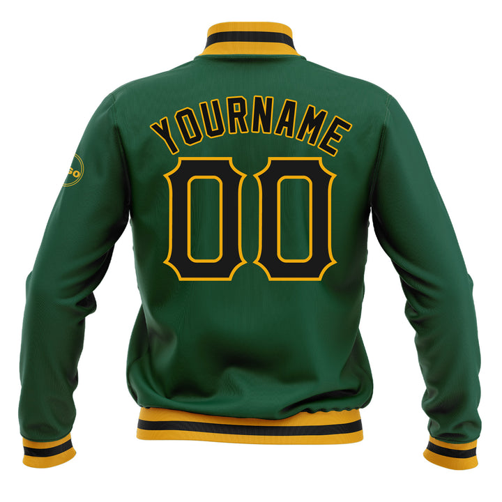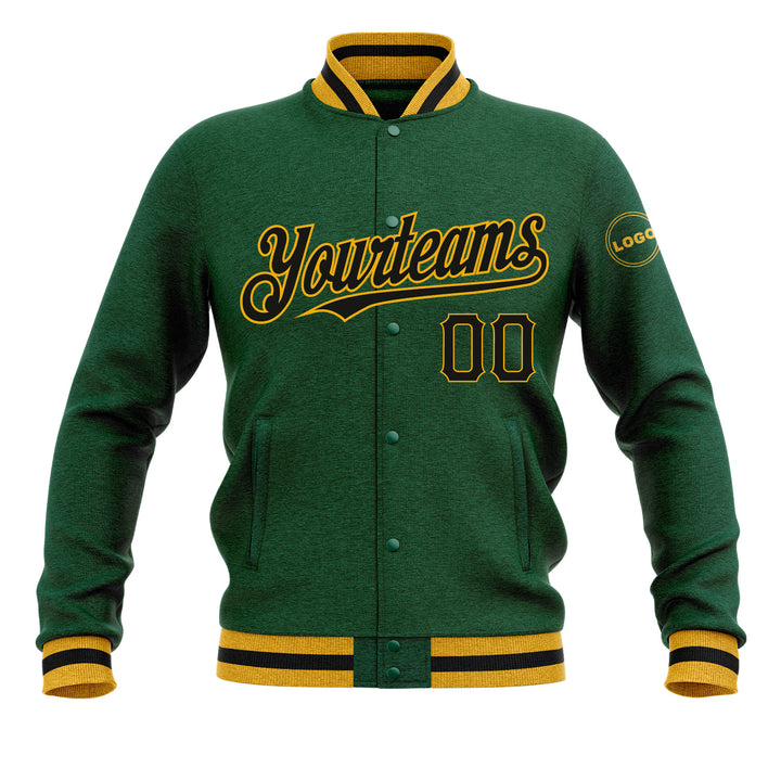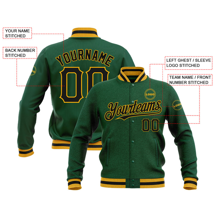Custom Kelly Green Black-Gold Classic Style Bomber Varsity Letterman Embroidered Jacket