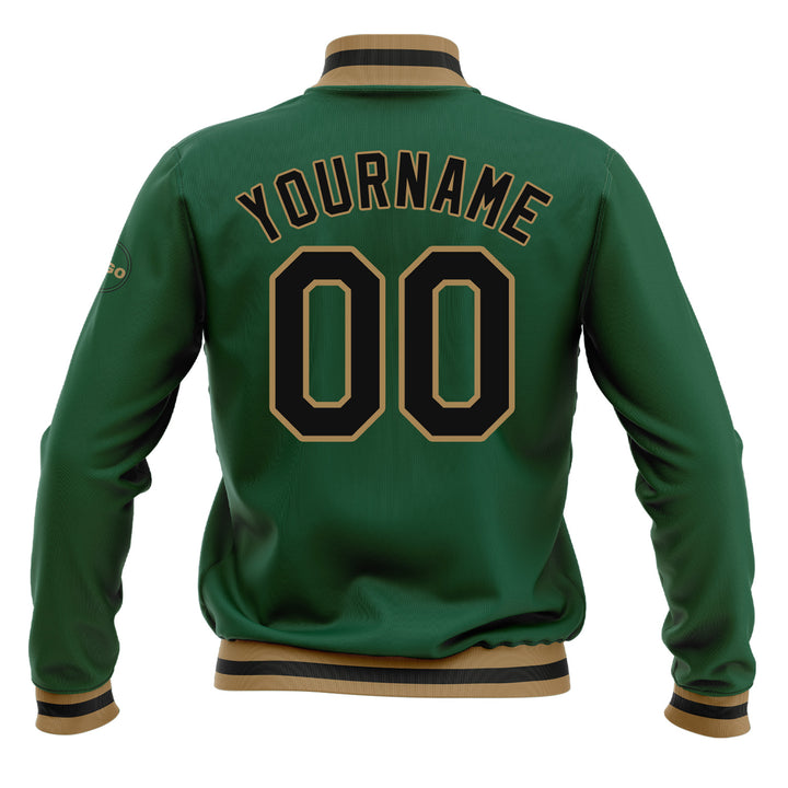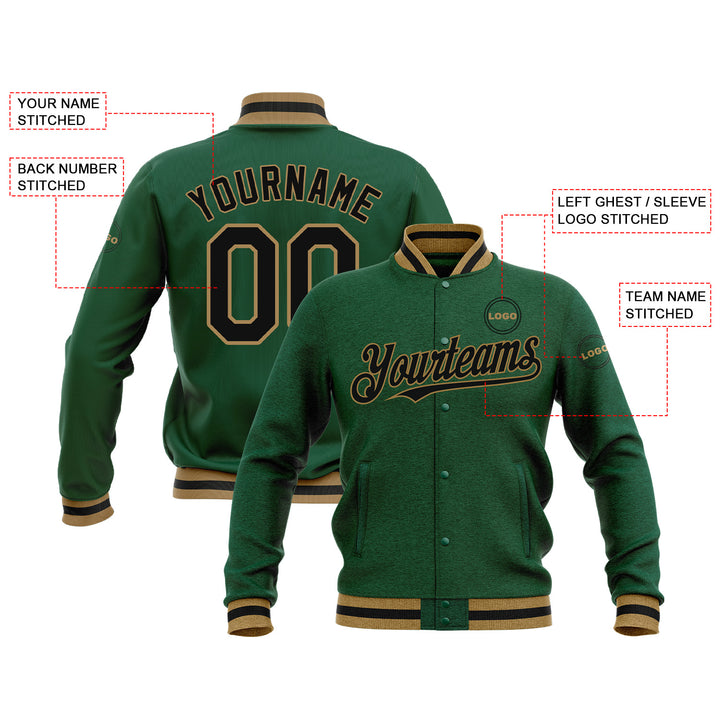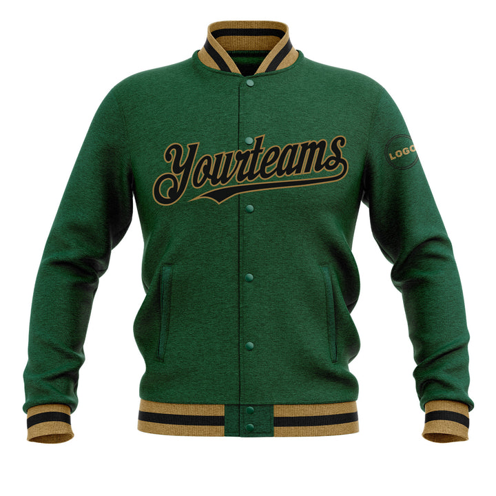 Custom Kelly Green Black-Old Gold Bomber Varsity Letterman Embroidered Jacket