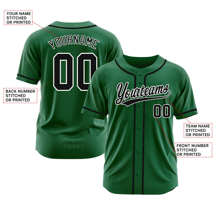 Custom Kelly Green Black-White Classic Style Authentic Sports Baseball Jersey