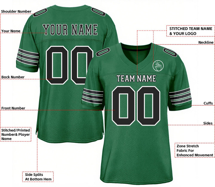 Custom Kelly Green Black-White Mesh Classic Style Authentic Sports Football Jersey