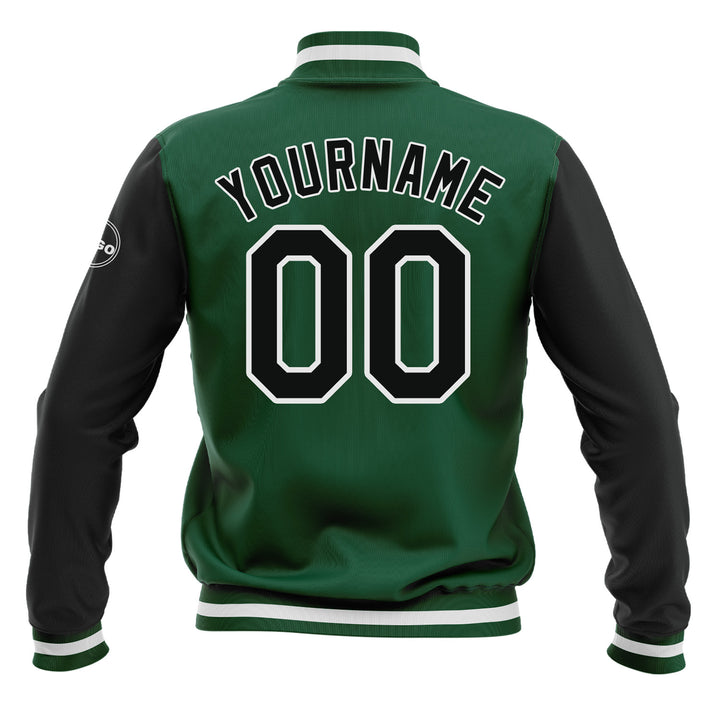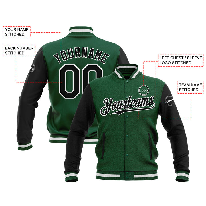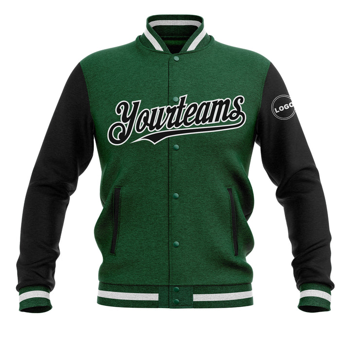Custom Kelly Green Black-White Two Tone Bomber Varsity Letterman Embroidered Jacket