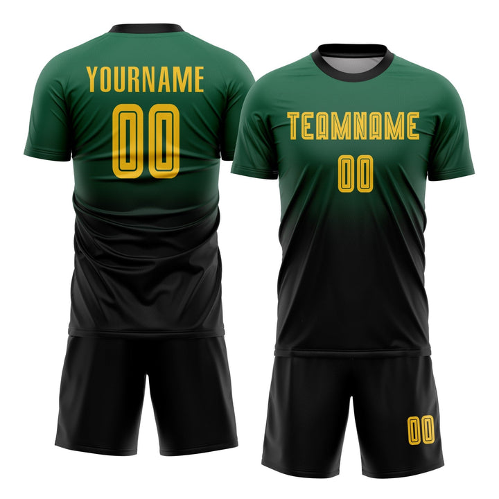 Custom Kelly Green Gold-Black Fade Fashion Classic Uniform Training Sets Soccer Jersey For Adults/Kids