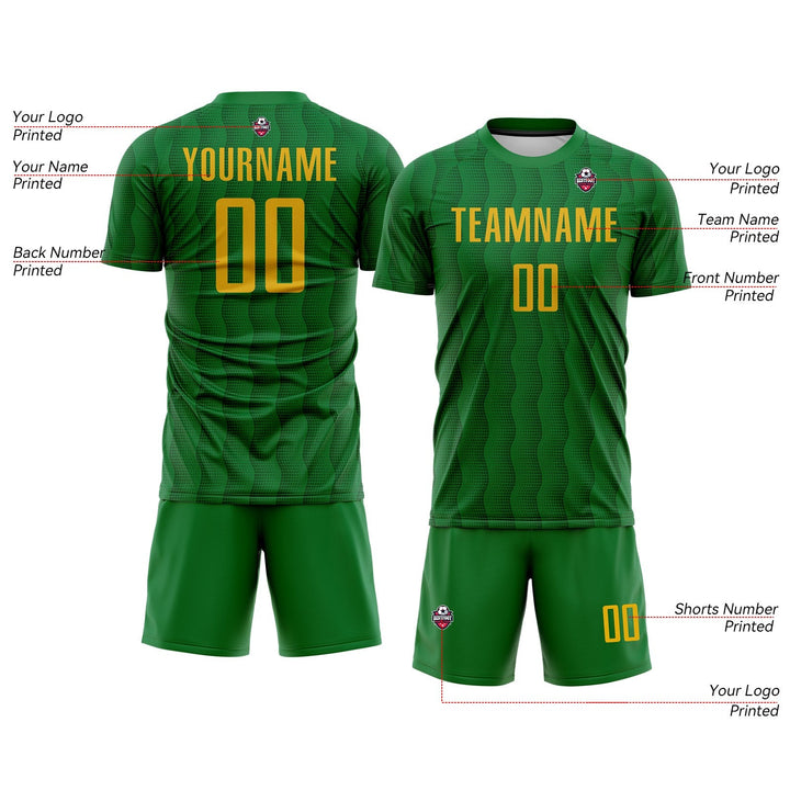 Custom Kelly Green Gold Classic Uniform Training Sets Soccer Jersey For Adults/Kids