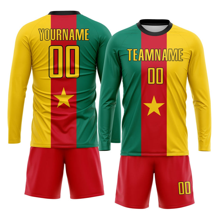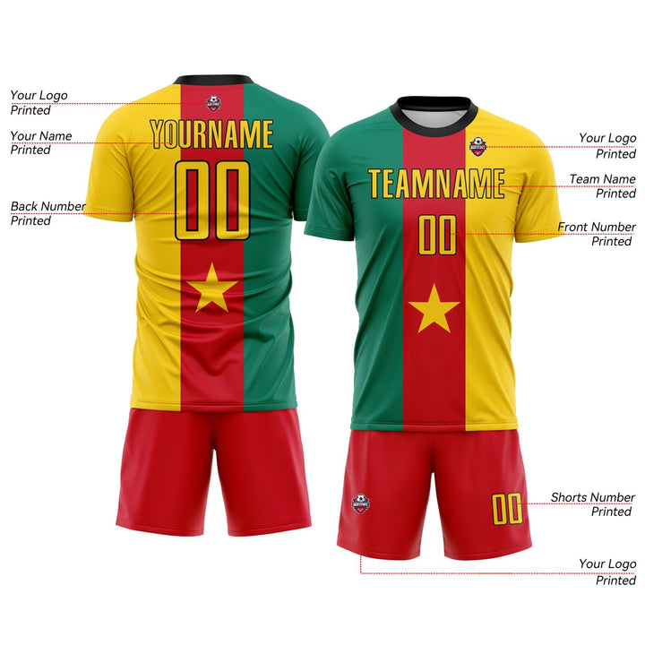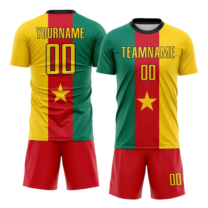 Custom Kelly Green Gold Red-Black Cameroonian Flag Classic Uniform Training Sets Soccer Jersey For Adults/Kids