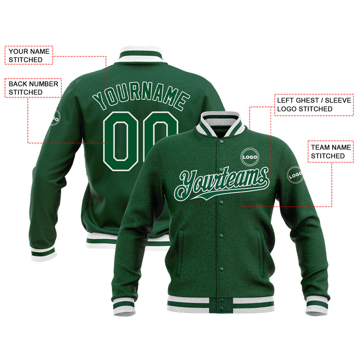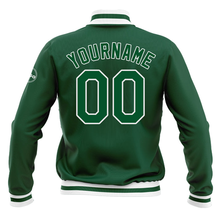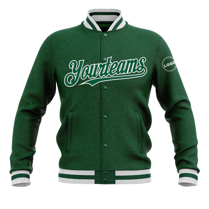 Custom Kelly Green Kelly Green-White Bomber Varsity Letterman Embroidered Jacket