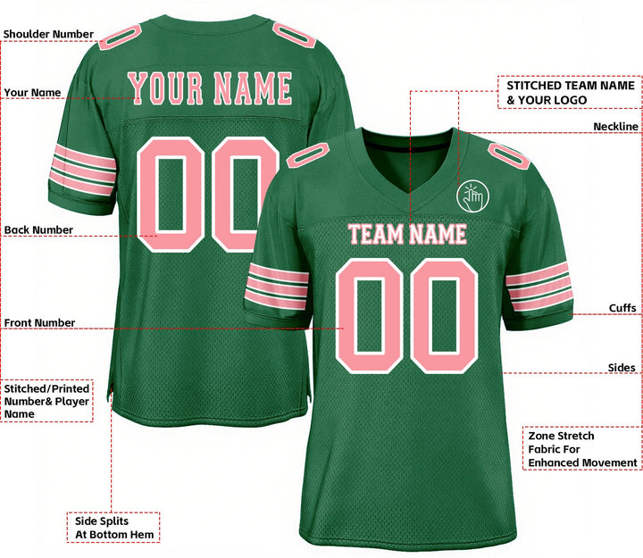 Custom Kelly Green Medium Pink-White Mesh Classic Style Authentic Sports Football Jersey