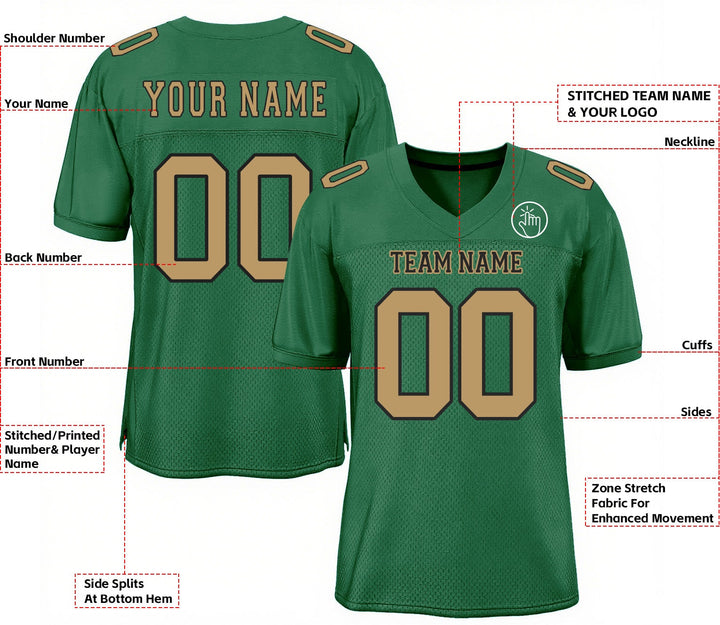 Custom Kelly Green Old Gold-Black Mesh Classic Style Authentic Sports Football Jersey