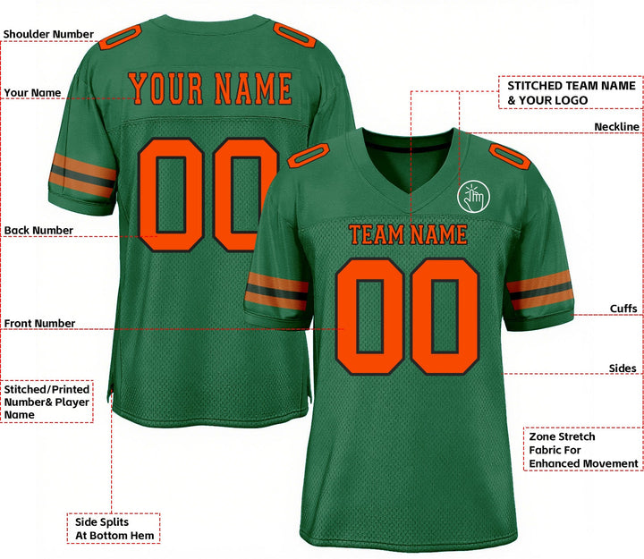 Custom Kelly Green Orange-Black Mesh Classic Style Authentic Sports Football Jersey