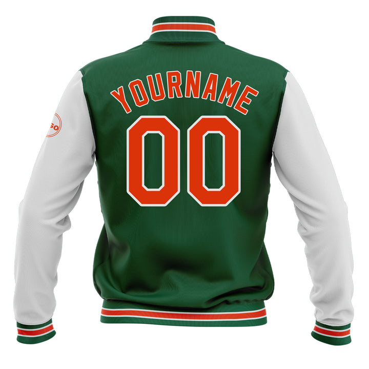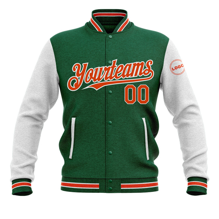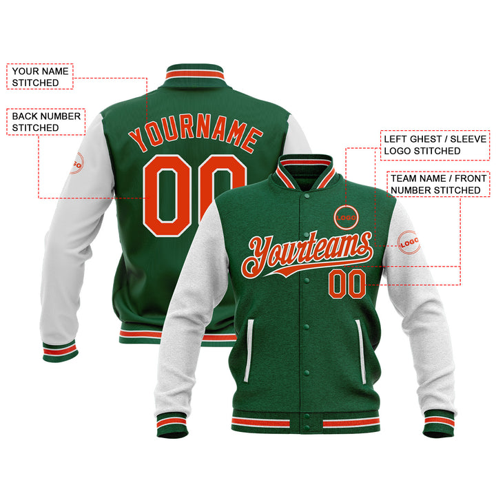 Custom Kelly Green Orange-White Classic Style Two Tone Bomber Varsity Letterman Embroidered Jacket