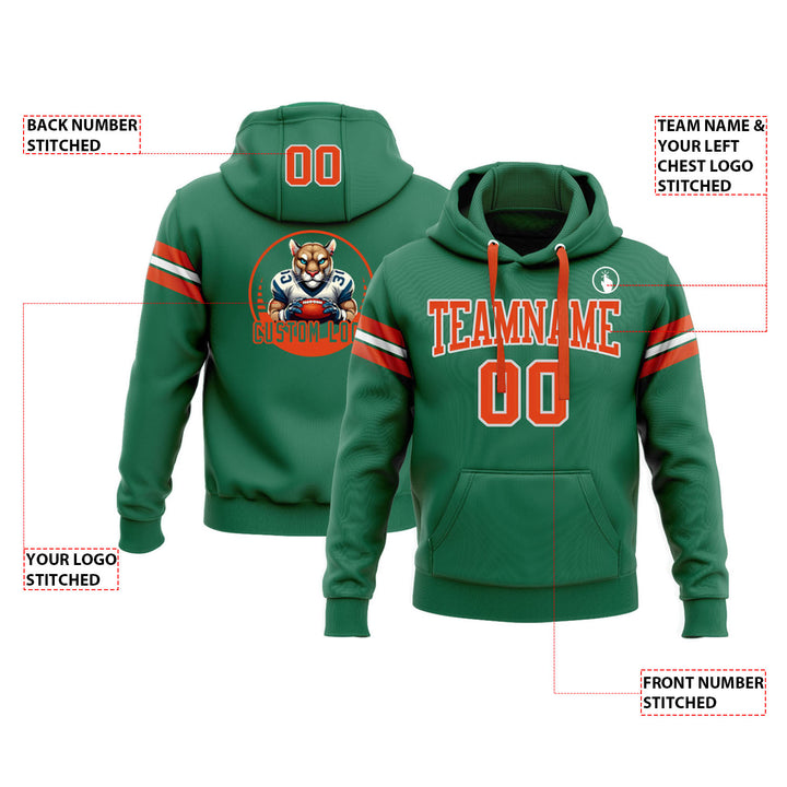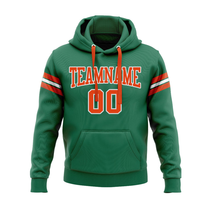 Custom Kelly Green Orange-White Personalized Sports Team Embroidered Pullover Hoodie