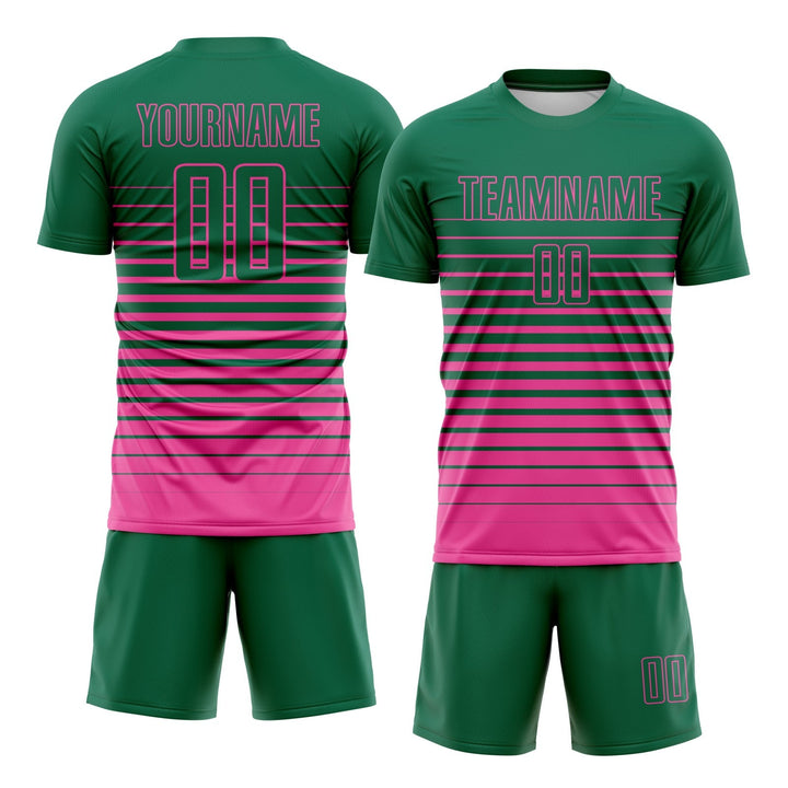 Custom Kelly Green Pink Pinstripe Fade Fashion Classic Uniform Training Sets Soccer Jersey For Adults/Kids
