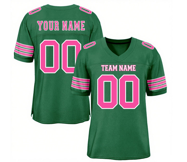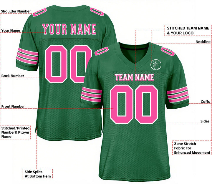 Custom Kelly Green Pink-White Mesh Classic Style Authentic Sports Football Jersey