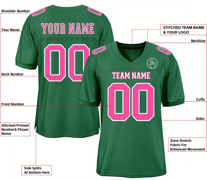 Custom Kelly Green Pink-White Mesh Classic Style Authentic Sports Football Jersey