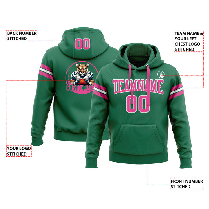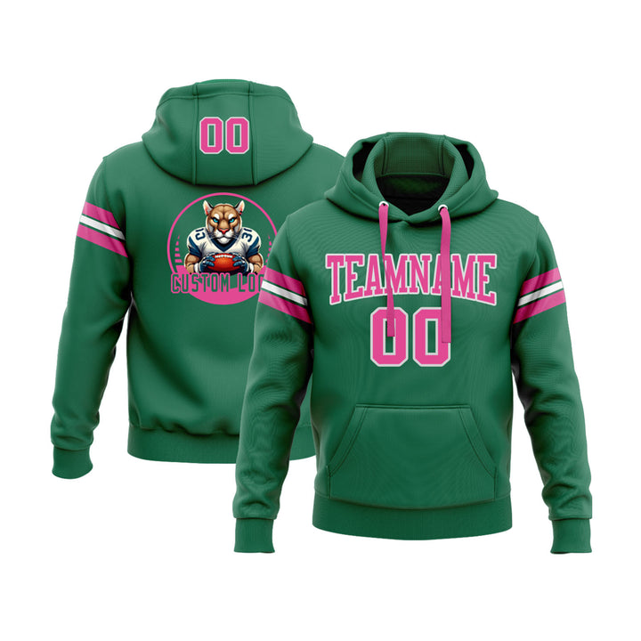Custom Kelly Green Pink-White Personalized Sports Team Embroidered Pullover Hoodie