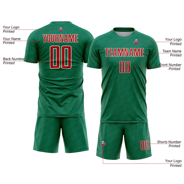 Custom Kelly Green Red-White Classic Uniform Training Sets Soccer Jersey For Adults/Kids