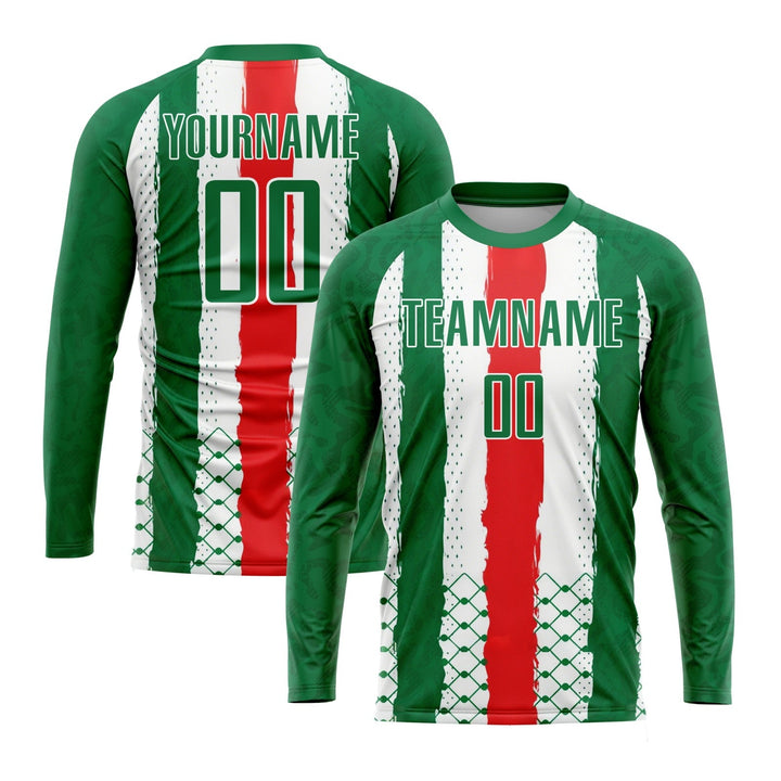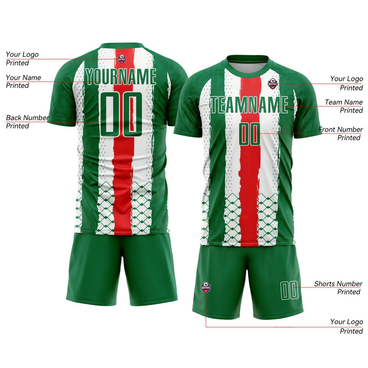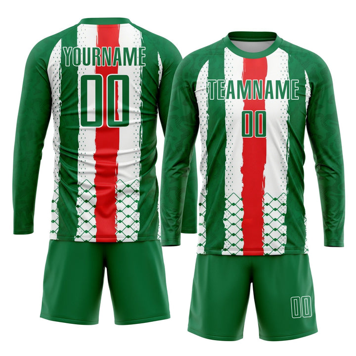 Custom Kelly Green Red-White Mexico Classic Uniform Training Sets Soccer Jersey For Adults/Kids