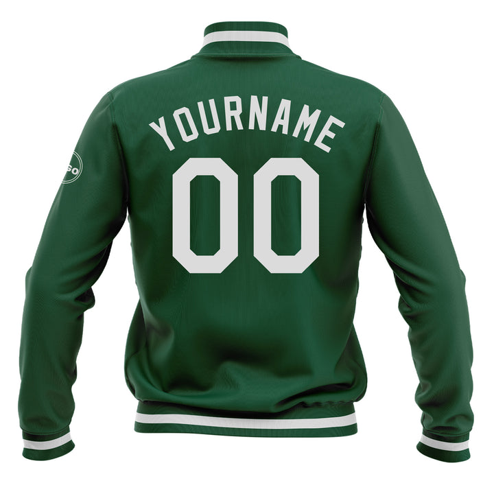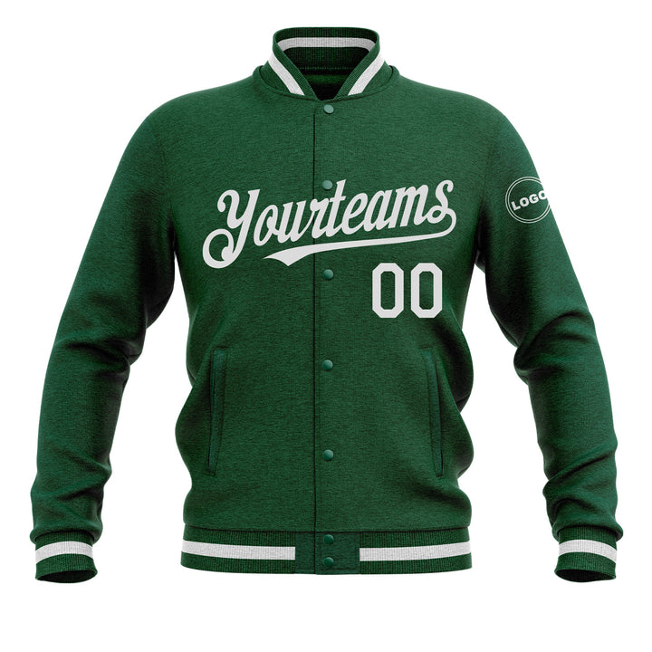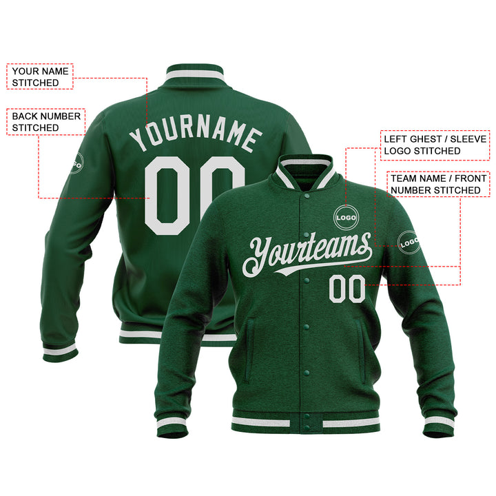 Custom Kelly Green White Classic Style Bomber Varsity Letterman Embroidered Jacket