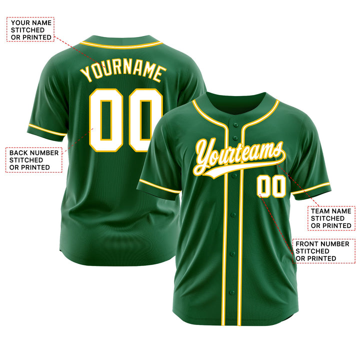 Custom Kelly Green White-Gold Classic Style Authentic Sports Baseball Jersey