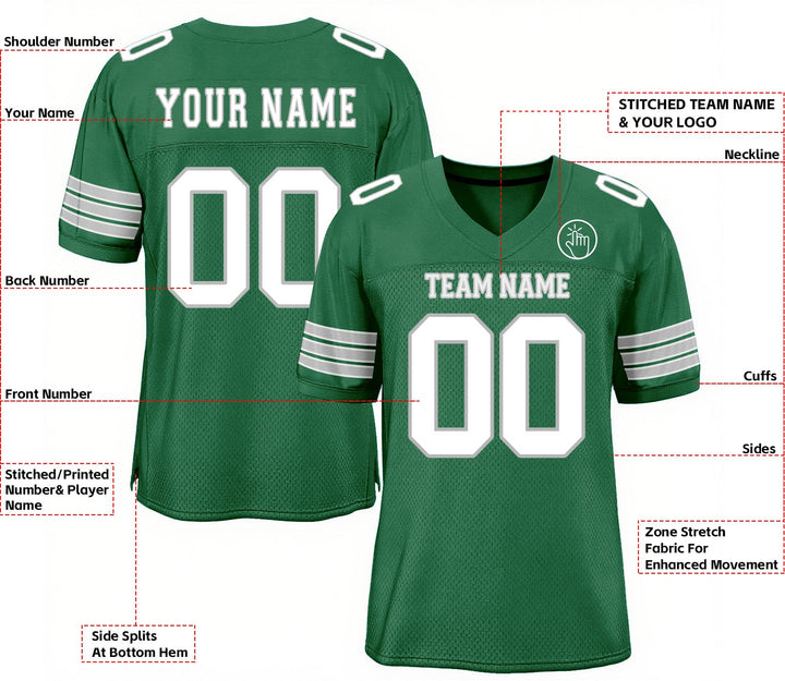 Custom Kelly Green White-Gray Mesh Classic Style Authentic Sports Football Jersey