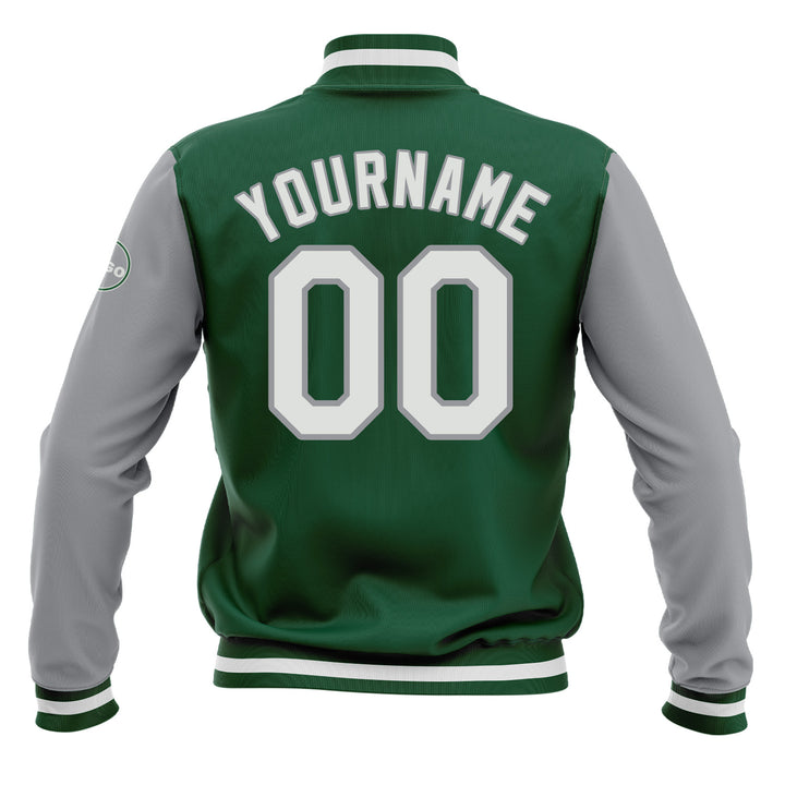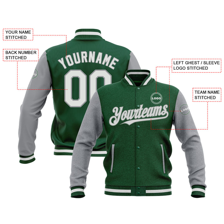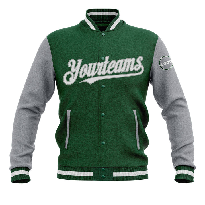 Custom Kelly Green White-Gray Two Tone Bomber Varsity Letterman Embroidered Jacket