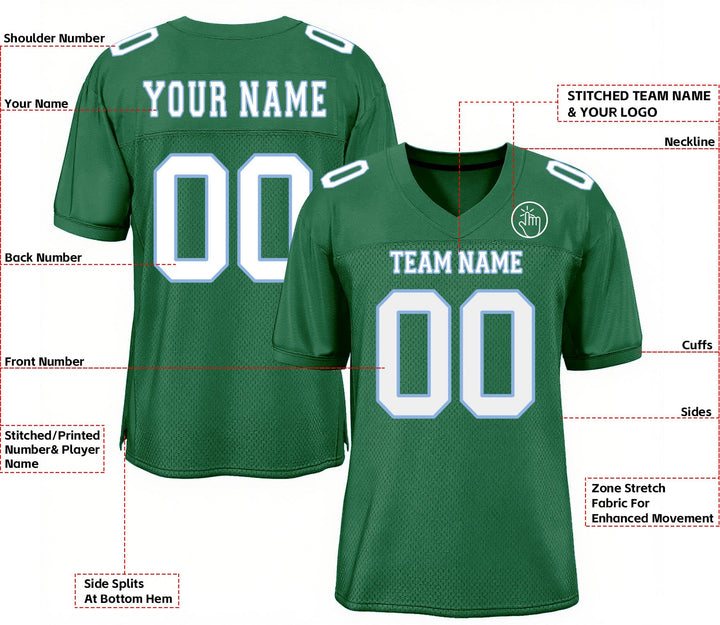 Our custom football jersey allows you to create your own design, adding your name, team logo, or any special graphics that represent your team spirit. Made from high-quality materials, it offers exceptional comfort and durability, ensuring you perform at your best in your custom uniform.