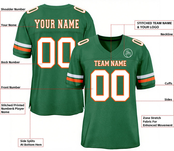 Custom Kelly Green White-Orange Mesh Classic Style Authentic Sports Football Jersey