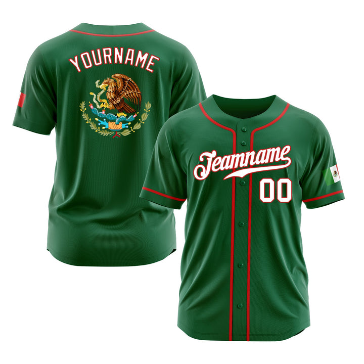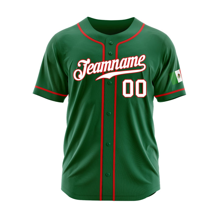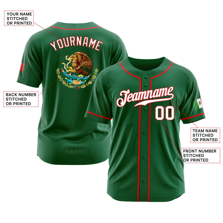 Custom Kelly Green White-Red Mexican Flag Fashion Classic Style Authentic Sports Baseball Jersey