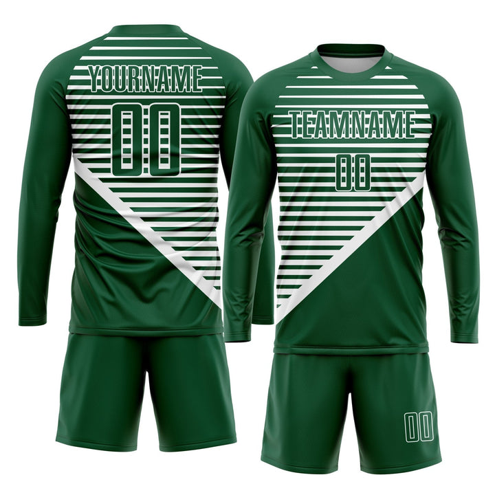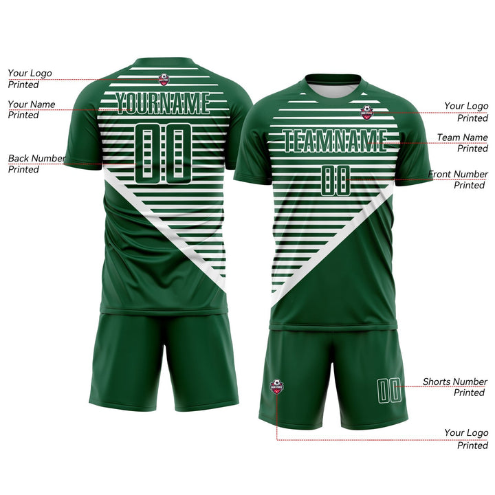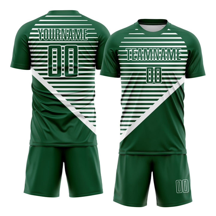 Custom Kelly Green White Stripes Classic Uniform Training Sets Soccer Jersey For Adults/Kids