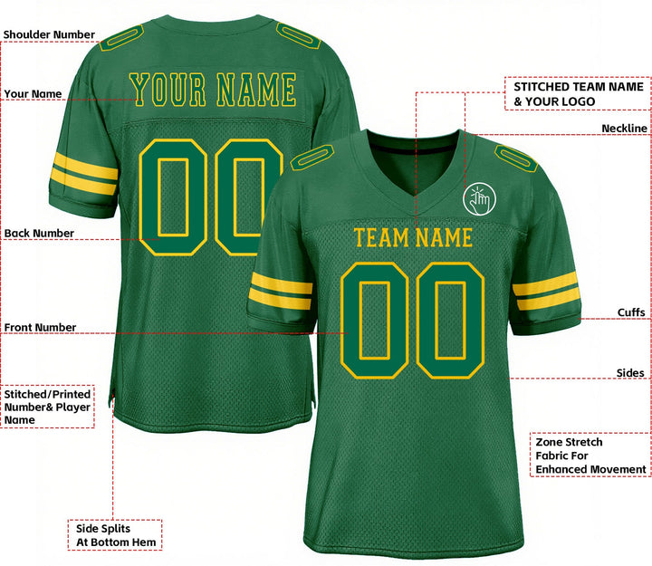Custom Kelly Green Yellow Mesh Classic Style Authentic Sports Football Jersey