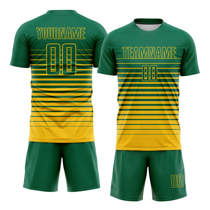 Custom Kelly Green Yellow Pinstripe Fade Fashion Classic Uniform Training Sets Soccer Jersey For Adults/Kids