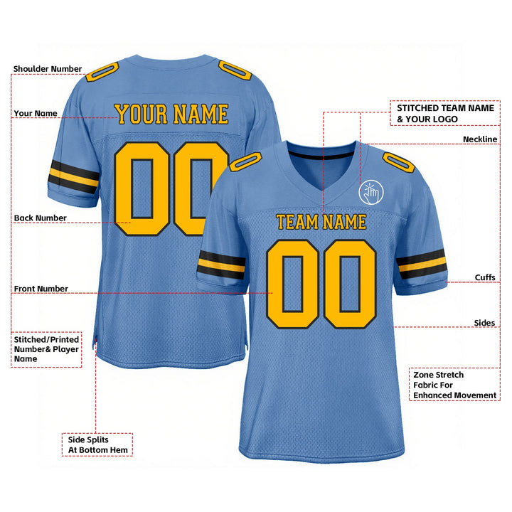Custom Light Blue Gold-Black Mesh Classic Style Authentic Sports Football Jersey