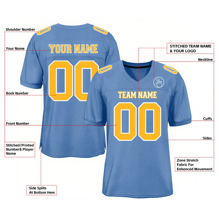 Custom Light Blue Gold-White Mesh Classic Style Authentic Sports Football Jersey