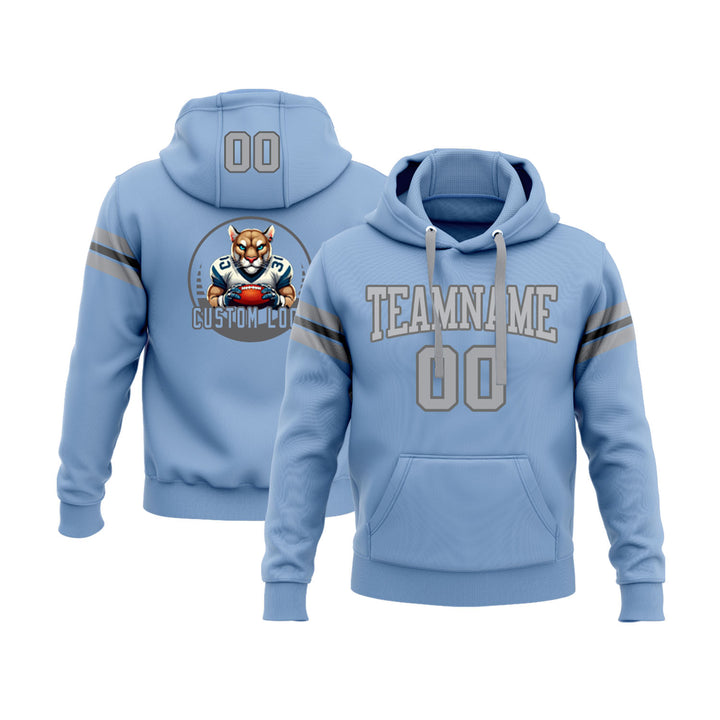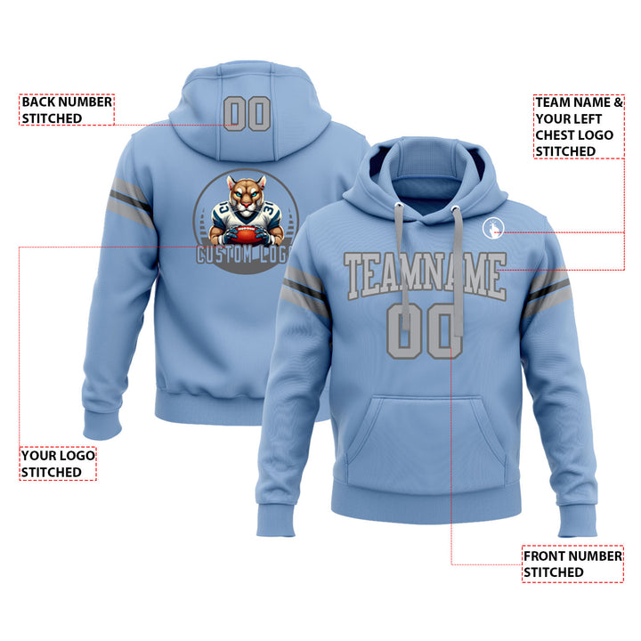 Custom Light Blue Gray-Steel Gray Personalized Sports Team Embroidered Pullover Hoodie