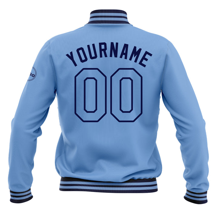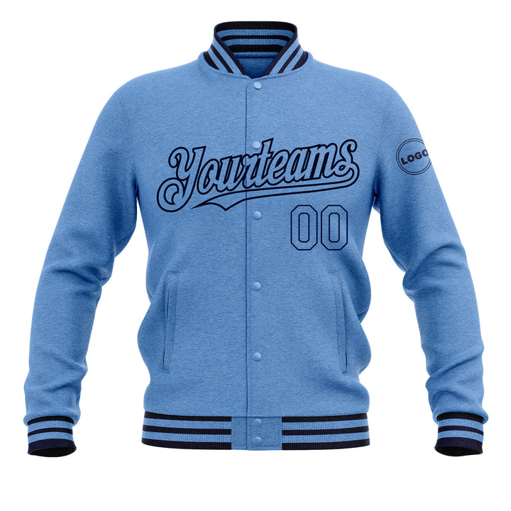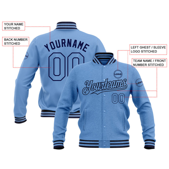 Custom Light Blue Navy Classic Style Bomber Varsity Letterman Embroidered Jacket