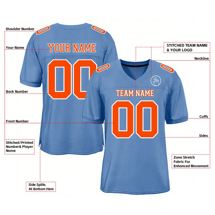 Custom Light Blue Orange-White Mesh Classic Style Authentic Sports Football Jersey