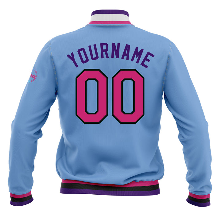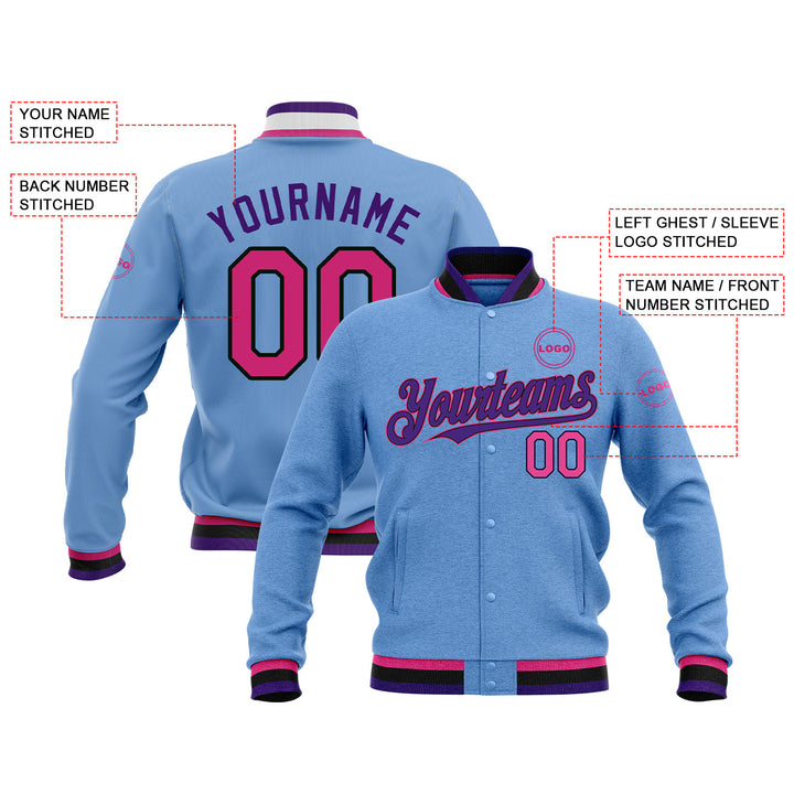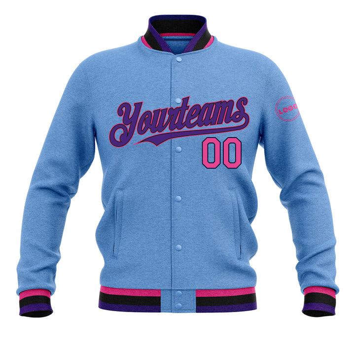 Custom Light Blue Pink Black-Purple Classic Style Bomber Varsity Letterman Embroidered Jacket