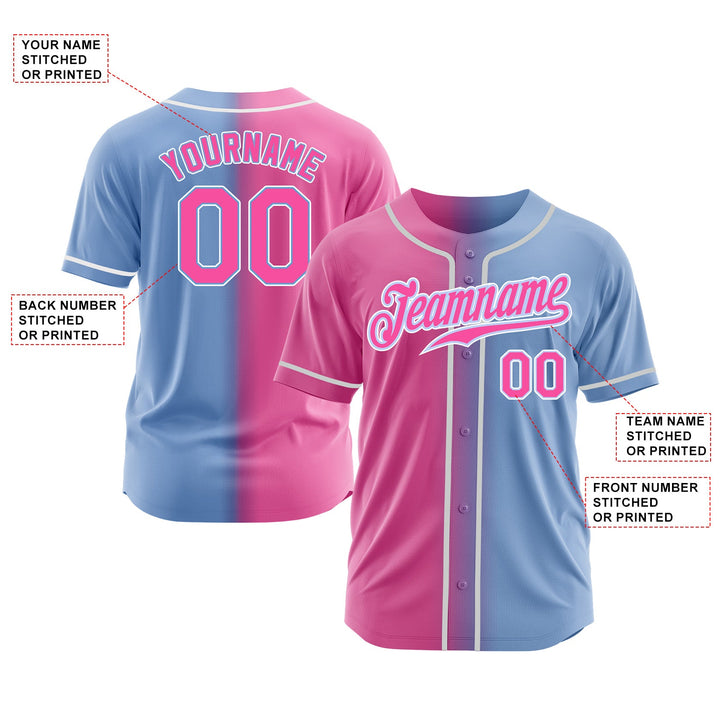 Custom Light Blue Pink-White Gradient Fashion Classic Style Authentic Sports Baseball Jersey