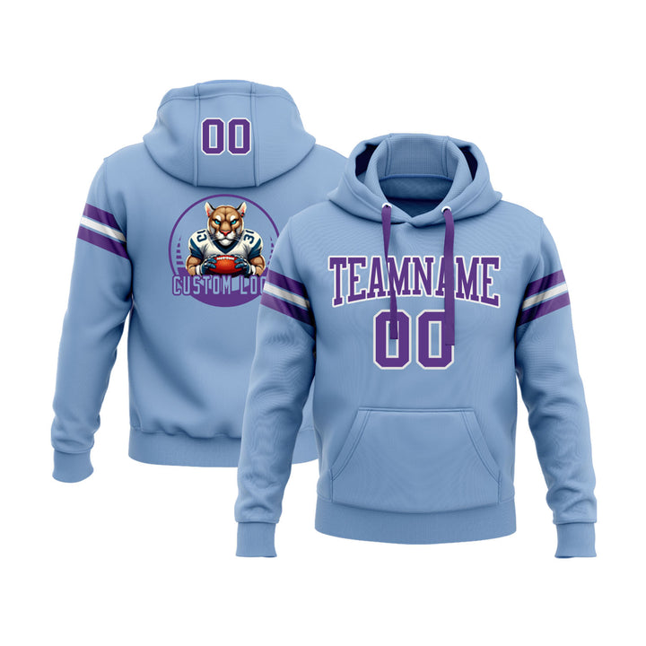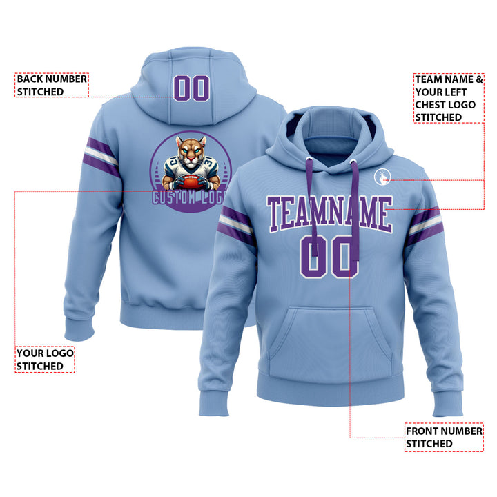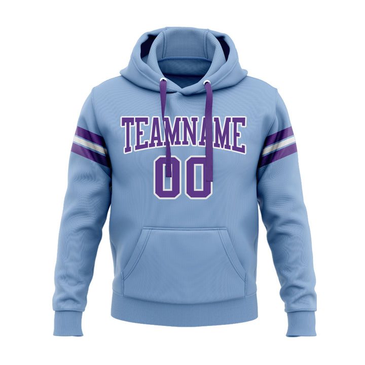 Custom Light Blue Purple-White Personalized Sports Team Embroidered Pullover Hoodie