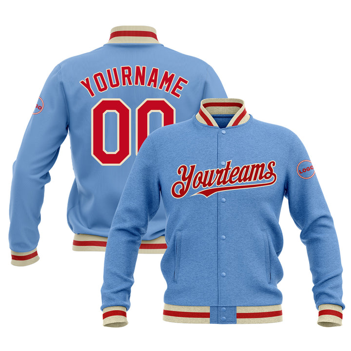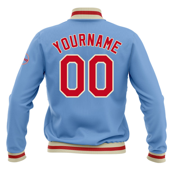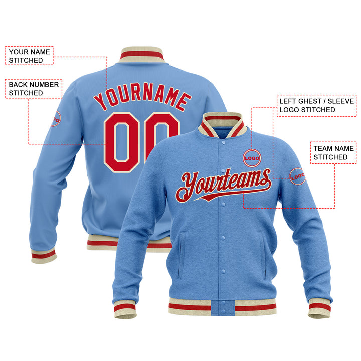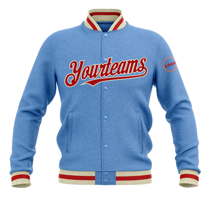 Custom Light Blue Red-Cream Bomber Varsity Letterman Embroidered Jacket
