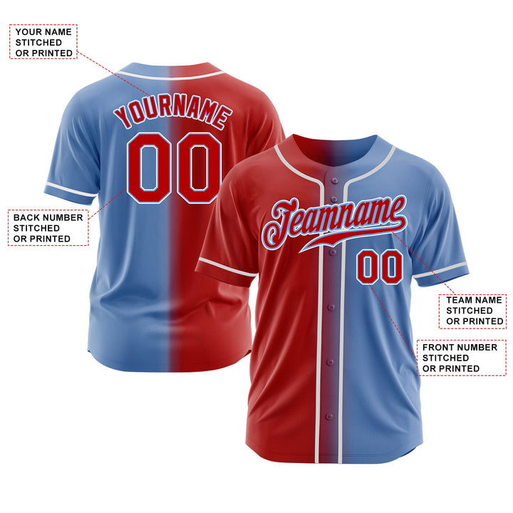 Custom Light Blue Red-White Gradient Fashion Classic Style Authentic Sports Baseball Jersey