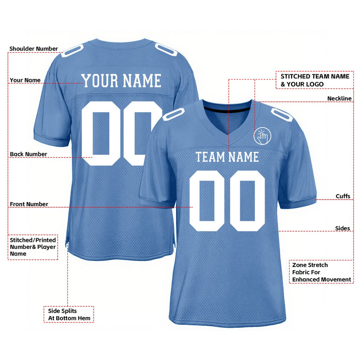 Custom Light Blue White Mesh Classic Style Authentic Sports Football Jersey