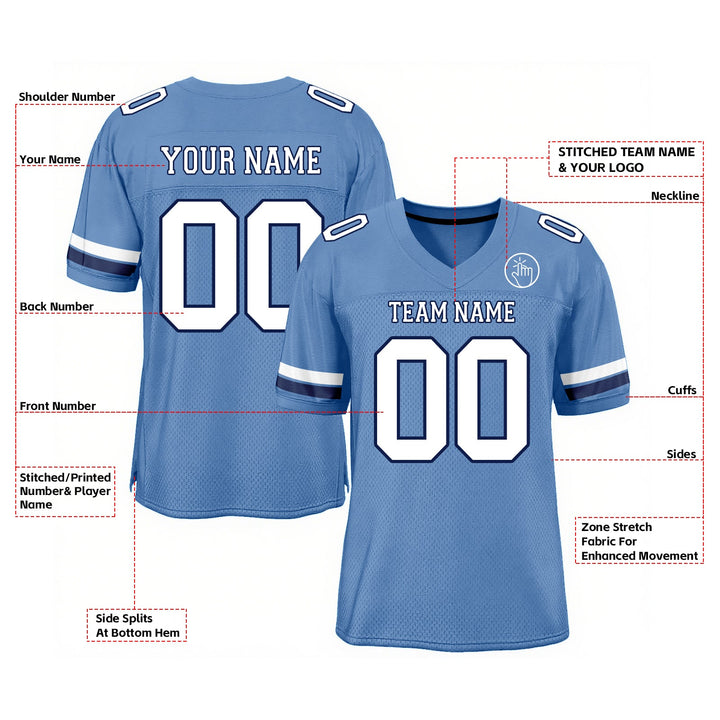 Custom Light Blue White-Navy Mesh Classic Style Authentic Sports Football Jersey