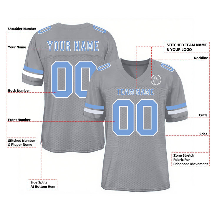 Custom Light Gray Light Blue-White Mesh Classic Style Authentic Sports Football Jersey