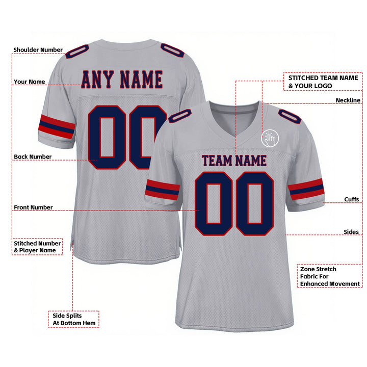 Custom Light Gray Navy-Red Mesh Classic Style Authentic Sports Football Jersey