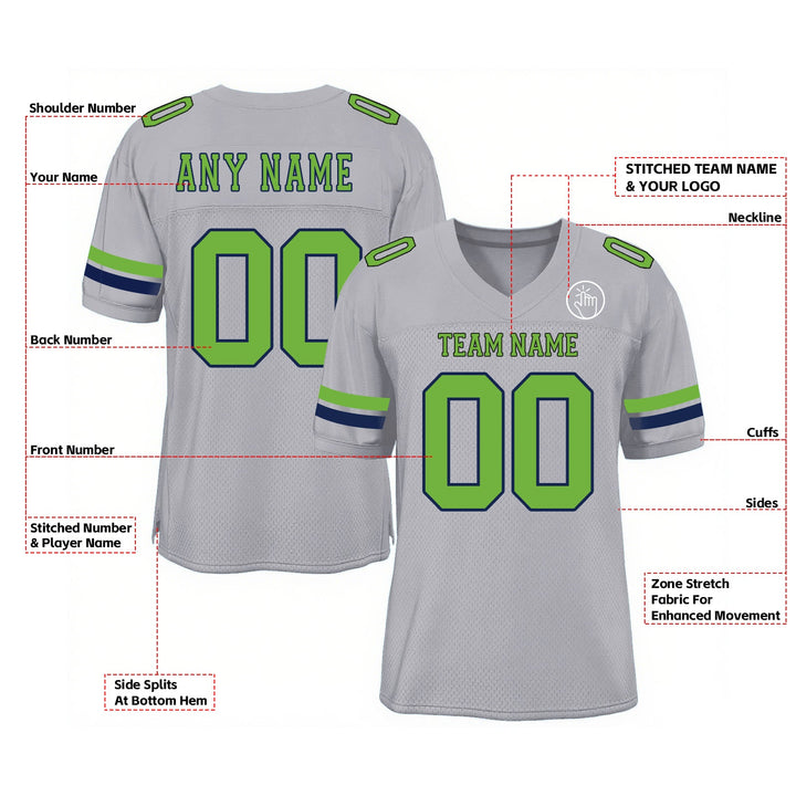Custom Light Gray Neon Green-Navy Mesh Classic Style Authentic Sports Football Jersey