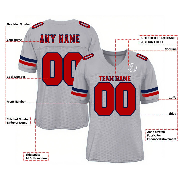 Custom Light Gray Red-Navy Mesh Classic Style Authentic Sports Football Jersey