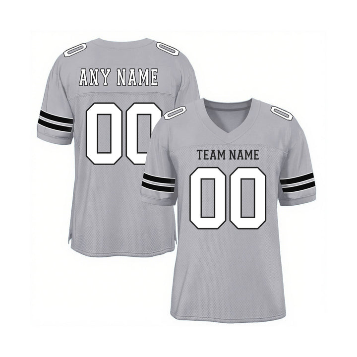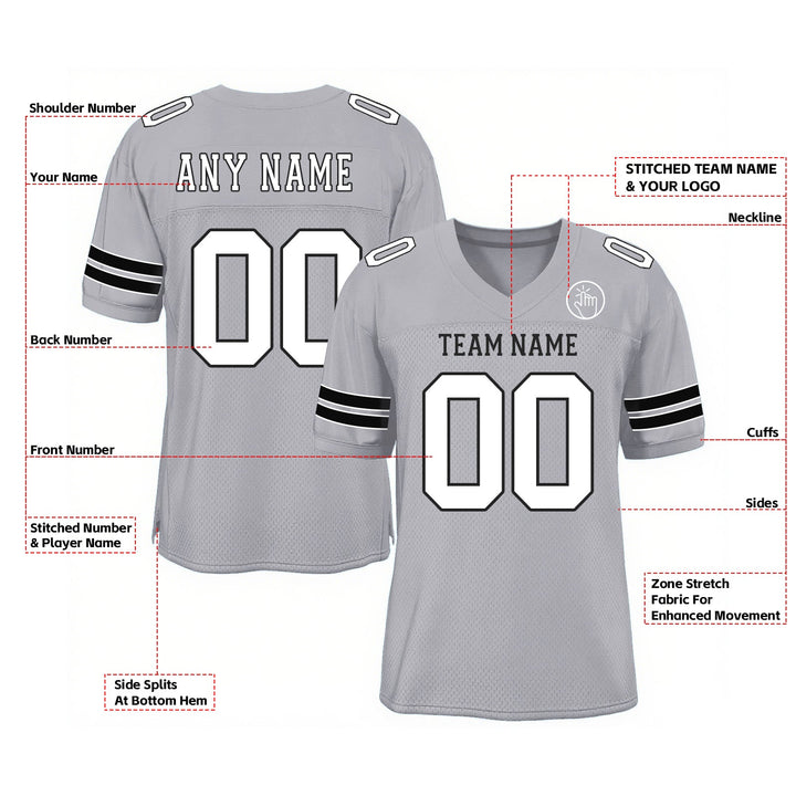 Custom Light Gray White-Black Mesh Classic Style Authentic Sports Football Jersey